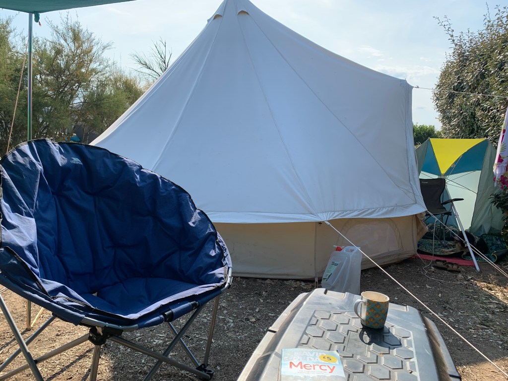Back at the pitch, we were struggling to cope with first world problems: is there room enough in the fridge for beers; squeaky-bum time when Peaches looks like she’s about to run out of petrol and how to find shade when the sun’s turned up to eleven? In the next door pitch, a woman is giving the hairdryer treatment to her partner. She is going postal on him and I am sure it will not be long before Godwin’s Law comes into play. The lady also has the un-nerving habit of engaging in a self-inflicted wardrobe malfunction by pulling her dress up above her waist when she needed to scratch her buttock. Iona’s i-phone won’t charge because it is saying there is liquid in the charging port, and I advise turning it off and on again, which elicits a response of “OK, boomer.”