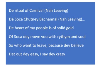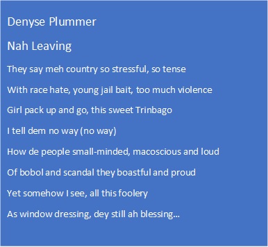 And how could I not give you the song here? Nah Leaving by Denyse Plummer:
