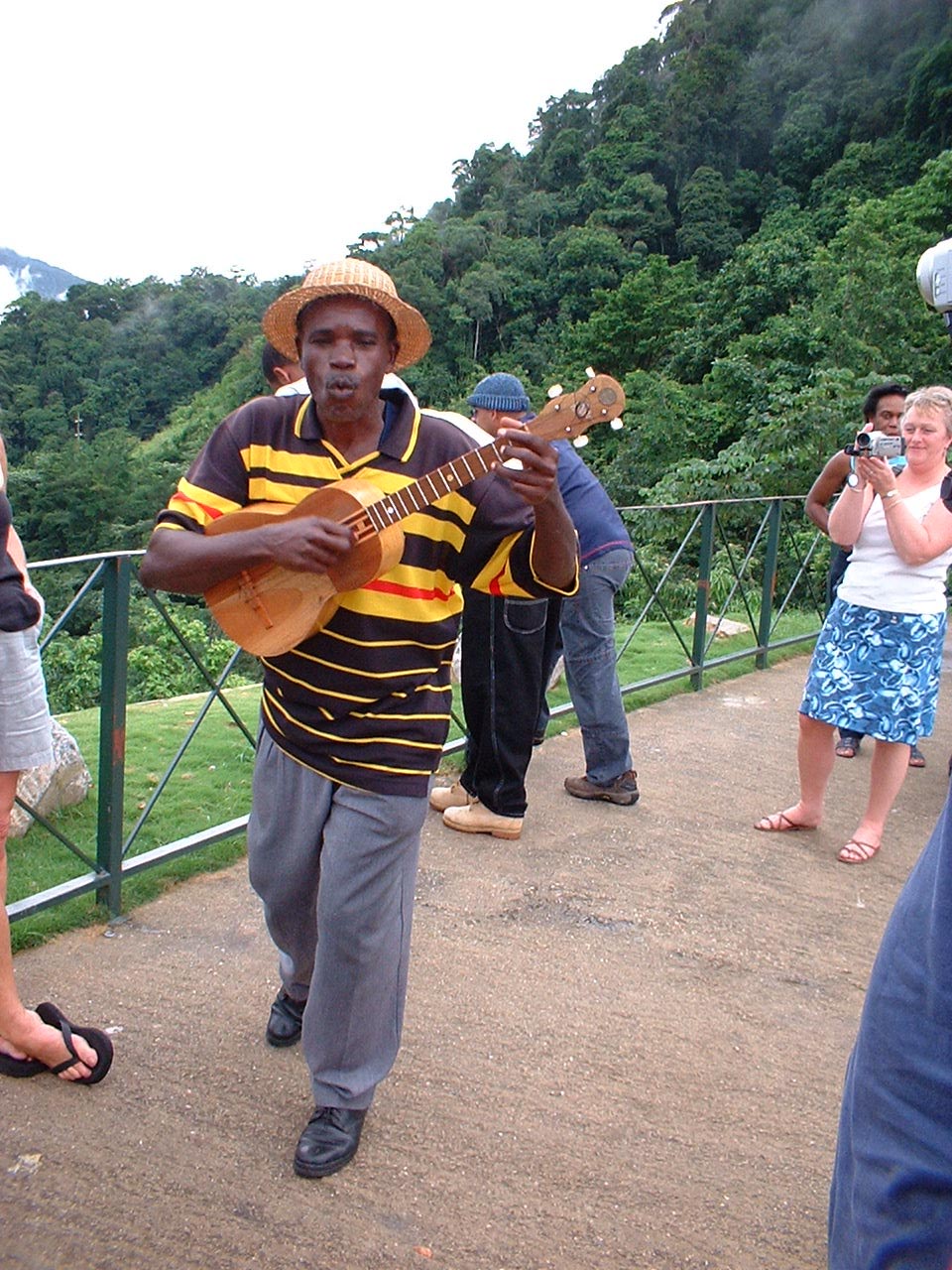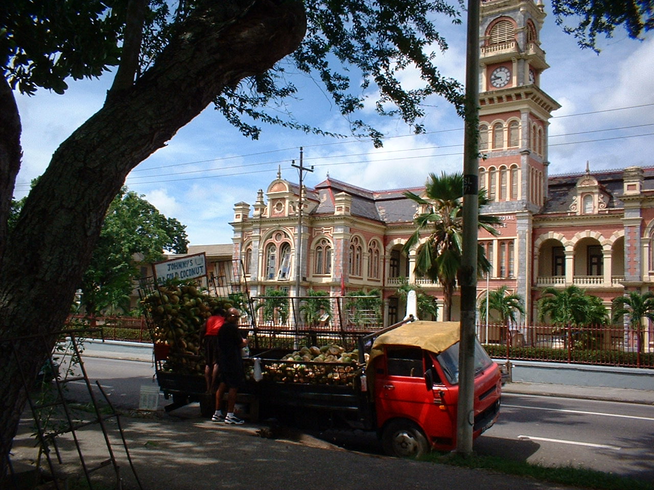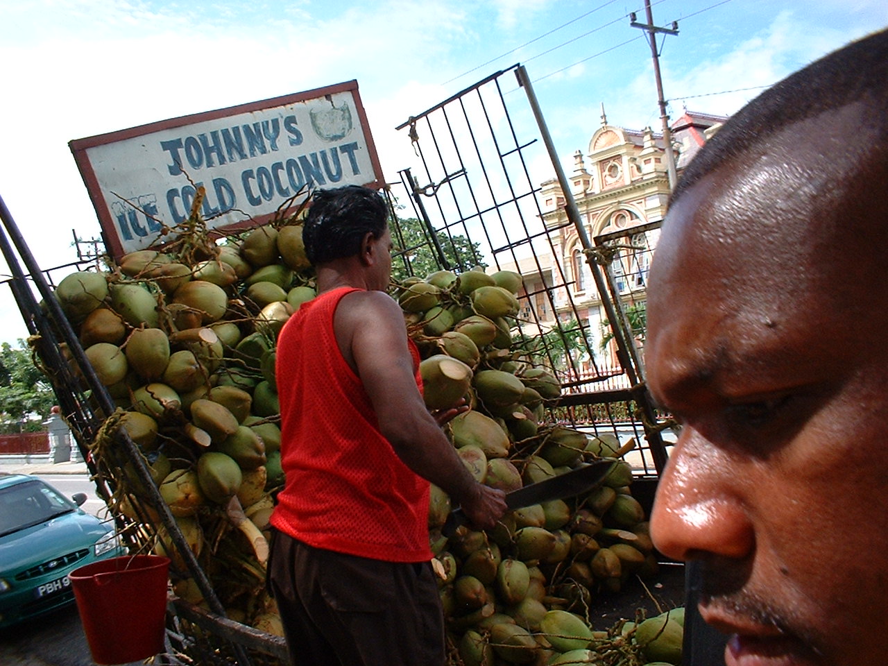 Still with Denyse Plummer, we can not forget the beauty of the country and the people. Trevor was our driver and became a friend after two weeks. He showed us how to tear open a bar of chocolate (which simply melted in the hot sun) and suck it out like a drink (“This is how we like our chocolate here.”), introduced us to the best coconut seller in Port of Spain and searched out street stalls to try local food. He took us to the Oval and reverently told stories of the times he had seen Lara bat there and was also responsible for getting us tickets to a Black Stalin Gig. The lady from the ministry was a tall, striking woman and she actually bent her knees inside her long dress so she did not look like she was a good foot taller than me for a photo. Here were some lovely people of Trinidad.